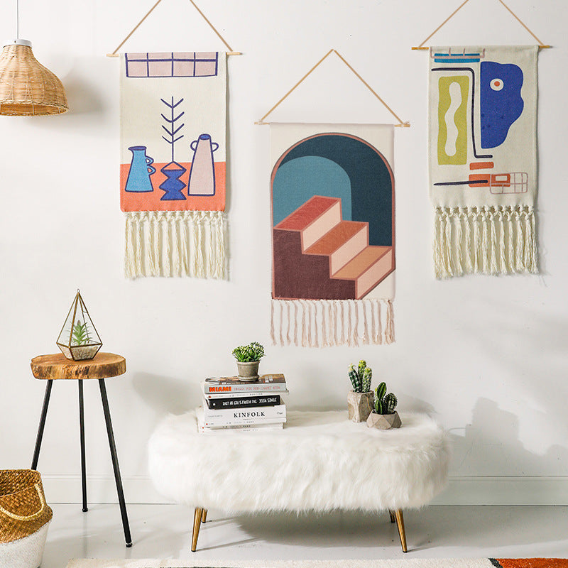 Tenture Murale en Macramé Coton Lin - Tapisseries Tissées à la Main
